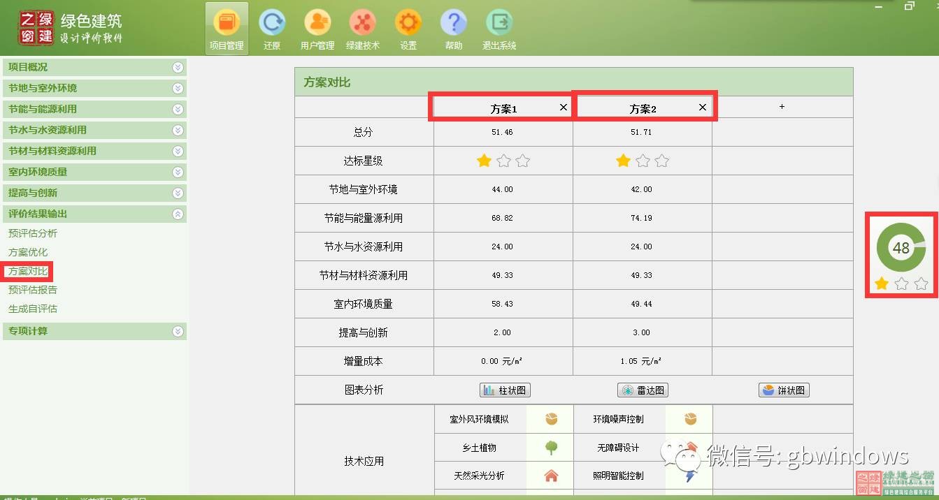 方案優化:針對現有項目得分情況,本著目標星級進行綠建技術選擇,從而得到預定項目得分