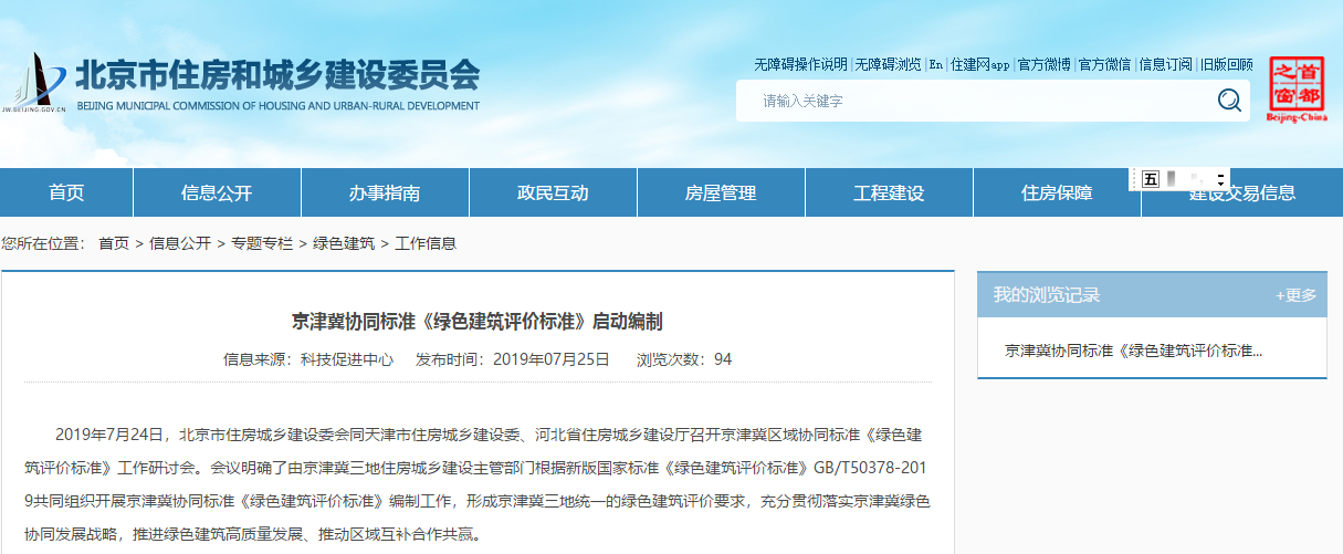 2019年7月24日,北京市住房城鄉建設委會同天津市住房城鄉建設委、河北省住房城鄉建設廳召開京津冀區域協同標準《綠色建筑評價標準》工作研討會。會議明確了由京津冀三地住房城鄉建設主管部門根據新版國家標準《綠色建筑評價標準》GB/T50378-2019共同組織開展京津冀協同標準《綠色建筑評價標準》編制工作,形成京津冀三地統一的綠色建筑評價要求,充分貫徹落實京津冀綠色協同發展戰略,推進綠色建筑高質量發展、推動區域互補合作共贏。
