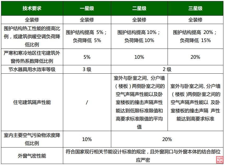 依據(jù)國家相關標準,綠色建筑評價指標體系由節(jié)地與室外環(huán)境、節(jié)能與能源利用、節(jié)水與水資源利用、節(jié)材與材料資源利用、室內(nèi)環(huán)境質(zhì)量、施工管理和運營管理七類指標組成,由高到低劃分為三星、二星和一星。