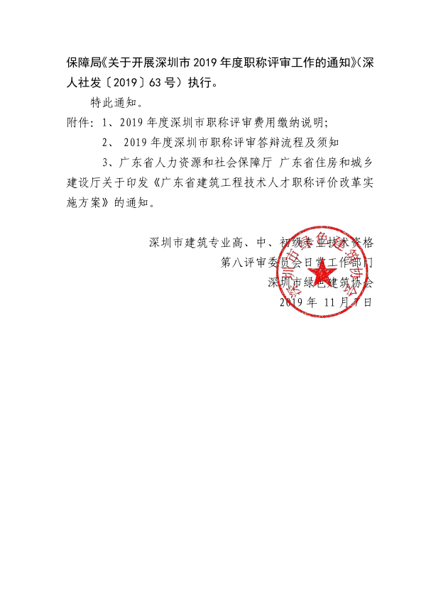 - 深圳綠建協會關于開展 2019 年度建筑工程(綠色建筑) 高、中、初級職稱評審工作的通知