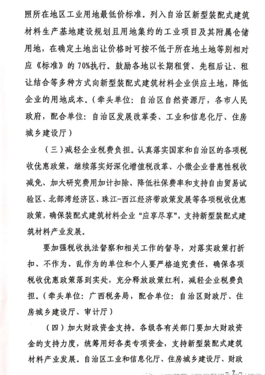 廣西壯族自治區(qū)工業(yè)和信息化廳與廣西壯族自治區(qū)住房和城鄉(xiāng)建設(shè)廳聯(lián)合印發(fā)《關(guān)于支持廣西新型裝配式建筑材料產(chǎn)業(yè)發(fā)展若干措施的通知》,通知明確了若干推動(dòng)裝配式建筑發(fā)展的強(qiáng)有力措施,高位推動(dòng),勢(shì)不可擋!