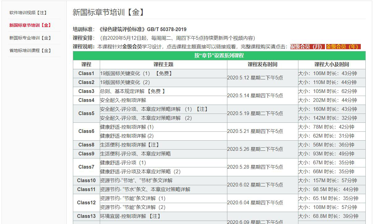 6、金級會員可獲得“視頻中心”模塊中包含新國標全專業全章節精講在內的所有最專業的綠建培訓視頻的在線觀看。