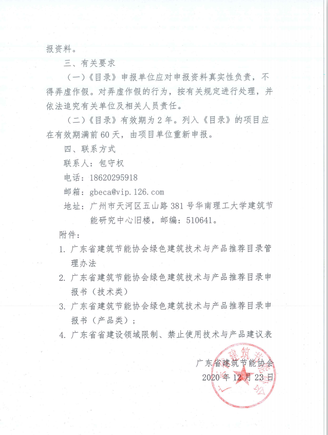 時(shí)間:2021-01-02 10:49:11 作者:GBWindows 來(lái)源:廣東省建筑節(jié)能協(xié)會(huì) 閱讀:1657內(nèi)容摘要:附件:【完整文件下載】1、廣東省建筑節(jié)能協(xié)會(huì)綠色建筑技術(shù)與產(chǎn)品推薦目錄管理辦法.pdf2、廣東省建筑節(jié)能協(xié)會(huì)綠色建筑技術(shù)與產(chǎn)品推薦目錄申報(bào)書(技術(shù)類).doc3、廣東省建筑節(jié)能協(xié)會(huì)綠色建筑技術(shù)與產(chǎn)品推薦目錄申報(bào)書(產(chǎn)品類).doc4、廣東省省建設(shè)領(lǐng)域限制、禁止使用技術(shù)與產(chǎn)品建議表......聲明:本站所有內(nèi)容,凡注明來(lái)源:綠建之窗”或“本站原創(chuàng)”的文字、圖片等,版權(quán)均屬本網(wǎng)所有,其他媒體、網(wǎng)站等如需轉(zhuǎn)載、轉(zhuǎn)貼,請(qǐng)注明來(lái)源為“綠建之窗”。凡注明"來(lái)源:XXX"的內(nèi)容,為本網(wǎng)轉(zhuǎn)載自其他媒體,轉(zhuǎn)載目的是傳遞更多信息,并不代表本網(wǎng)贊同其觀點(diǎn)和對(duì)其真實(shí)性負(fù)責(zé)。如有侵權(quán),也請(qǐng)第一時(shí)間聯(lián)系我們。對(duì)不遵守聲明或其他違法、惡意使用本網(wǎng)內(nèi)容者,本站保留追究其法律責(zé)任的權(quán)利。管理員QQ: 4993067 32533240,緊急聯(lián)系方式:18501126985 13693161205。