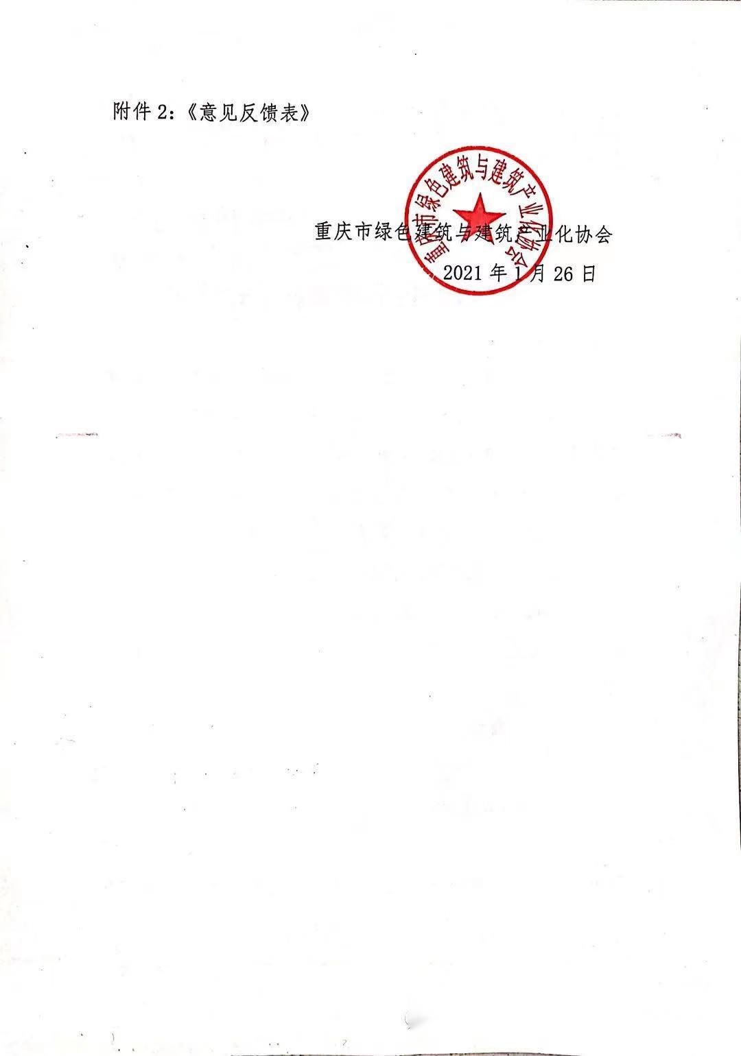 由重慶市綠色建筑與建筑產業(yè)化協(xié)會技術咨詢與服務分會組織起草的團體標準《綠色建筑技術咨詢與服務行業(yè)自律行為規(guī)范》(T/CQGBAIA 001-2021)現(xiàn)已完成征求意見稿編制工作,根據(jù)《重慶市綠色建筑與建筑產業(yè)化協(xié)會團體標準管理辦法(試行)》有關規(guī)定,為保證標準的科學性、嚴謹性和適用性,現(xiàn)公開征求意見。請將意見填入“意見反饋表”,于2021年2月28日前將書面意見以E-mail形式反饋給協(xié)會秘書處。