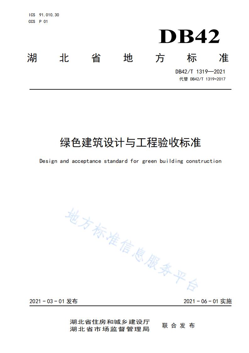 現(xiàn)批準(zhǔn)《綠色建筑設(shè)計(jì)與工程驗(yàn)收標(biāo)準(zhǔn)》為湖北省地方標(biāo)準(zhǔn),編號(hào)DB42/T1319-2021(代替DB42/T1319-2017),自 2021年6月1日實(shí)施。