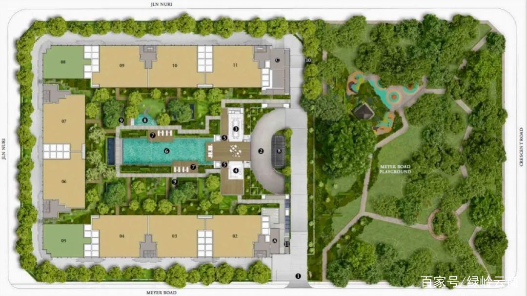 項(xiàng)目位于新加坡邁耶路,毗鄰一個(gè)寧靜的公園。