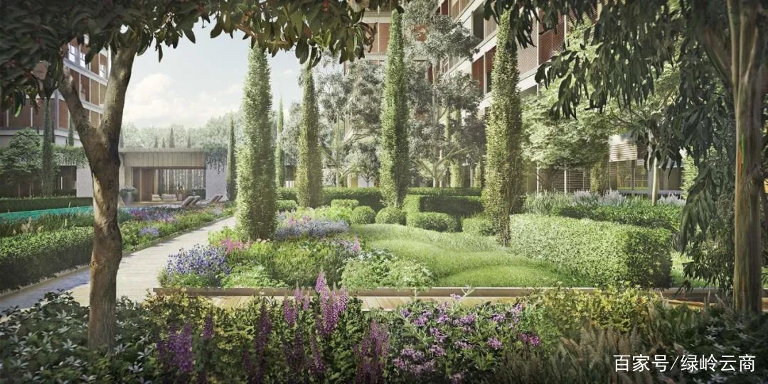 在花園中,沿著森林公園主要軸向的水池凸顯整個(gè)景觀的貴氣。