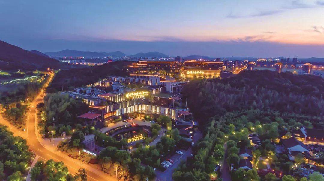 蘇州高新區(qū)清山會(huì)議中心坐落于高新區(qū)科技城青山西側(cè),原址是一座廢棄的采石宕口,地形東低西高。酒店結(jié)合宕口整治,依據(jù)宕口原有場(chǎng)地規(guī)劃建設(shè),由東至西,沿山體逐漸拾級(jí)而上,盡量不改變并合理利用宕口四周原有的植被、水系。景觀設(shè)計(jì)中通過(guò)室外庭院、屋頂花園、綠色中庭等布置,使整個(gè)建筑掩映在青山的山水風(fēng)光之中,自然和諧。建筑群合理組織,引導(dǎo)雨季山洪排入酒店?yáng)|側(cè)彩石湖,消除山體滑坡等地質(zhì)災(zāi)害,有效提高了青山的生態(tài)景觀和土地使用價(jià)值。
