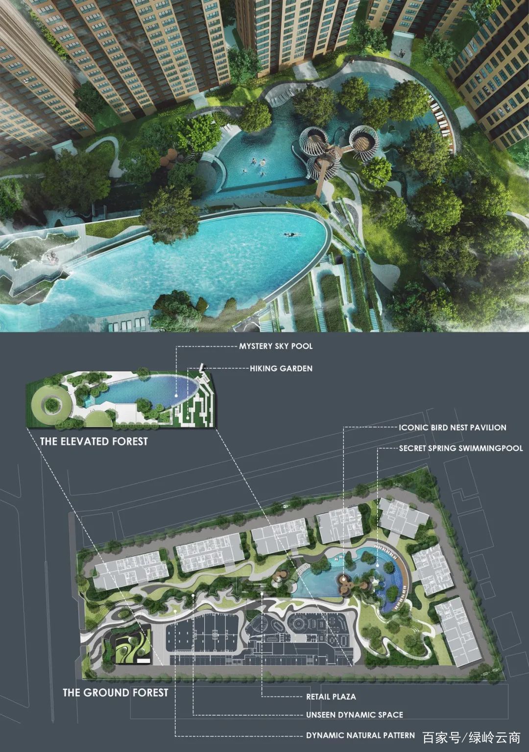 鳥巢的基本特征激發了這個項目的主要設計理念,象征著庇護所、安全和自然繁衍。設計形式反映了自然的動態運動,從而為軟景觀和硬景觀空間帶來平衡。