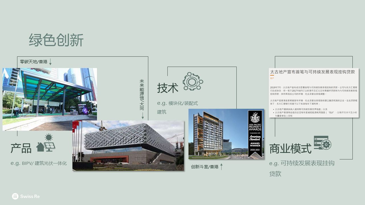 “建筑行業(yè)占全球碳排放的 40%。建筑是氣候變化加速演變的原因,但同時(shí)也有機(jī)會(huì)成為緩解氣候變化的解決方案。當(dāng)下,千禧一代與 Z 世代的崛起、投資者與監(jiān)管機(jī)構(gòu)的督促以及管理風(fēng)險(xiǎn)的需求,都在驅(qū)動(dòng)著房地產(chǎn)行業(yè)加速綠色轉(zhuǎn)型。越來越多的企業(yè)都已承諾在 2050 年達(dá)到建筑的全面凈零排放,達(dá)到這一目標(biāo)離不開建筑科技與商業(yè)模式的綠色創(chuàng)新,期待看到保險(xiǎn)業(yè)能為企業(yè)積極擁抱創(chuàng)新管理風(fēng)險(xiǎn),保駕護(hù)航。”