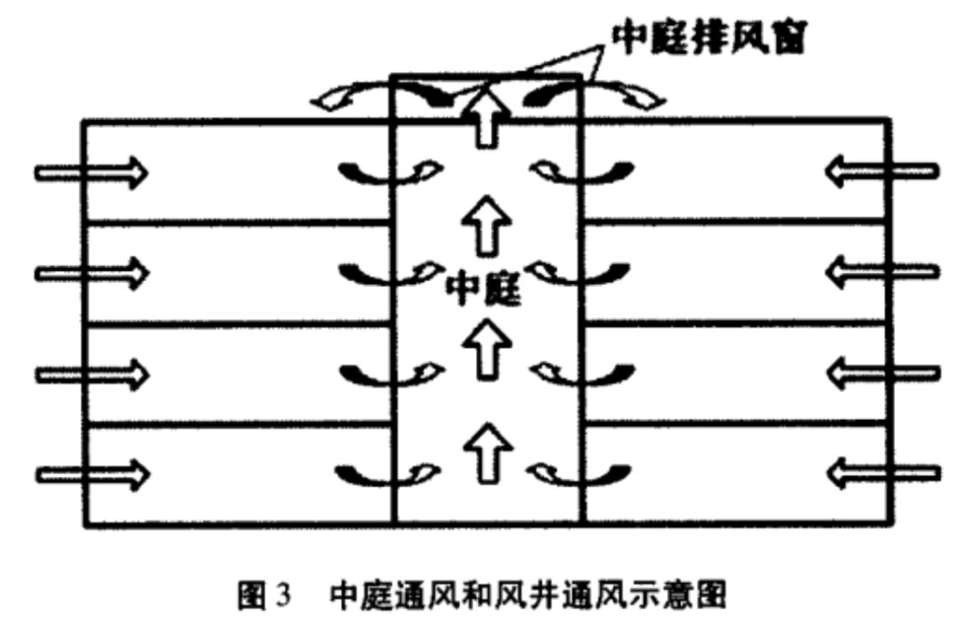 中庭通風、風井通風都屬于熱壓通風,主要是通過高溫空氣與低溫空氣的密度不同所形成的密度差進行空氣流通的加強。中庭或者風井的范圍內空氣溫度較高,所以空氣密度小,氣流呈上升趨勢,周圍的空氣溫度較低,密度大,氣流呈下降趨勢,從而形成一種空氣上下回流的流通形式。
