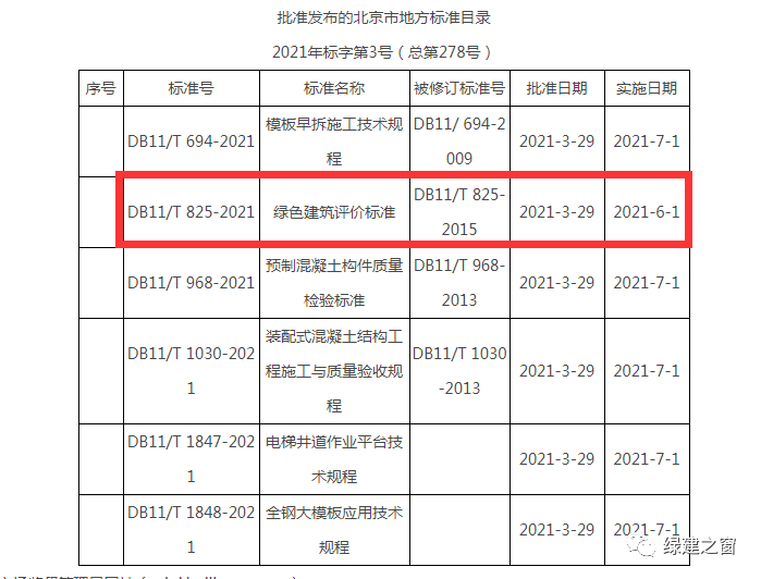 - 《北京市綠色建筑評價標準》(DB11/T 825-2021)將于2021年6月1日起執行