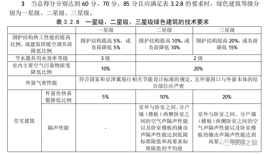 為提升綠色建筑性能和品質,2021版地標針對一星級、二星級和三星級綠色建筑在能耗、節水、隔聲、室內空氣質量、外窗氣密性的方面提出了更高的技術要求。