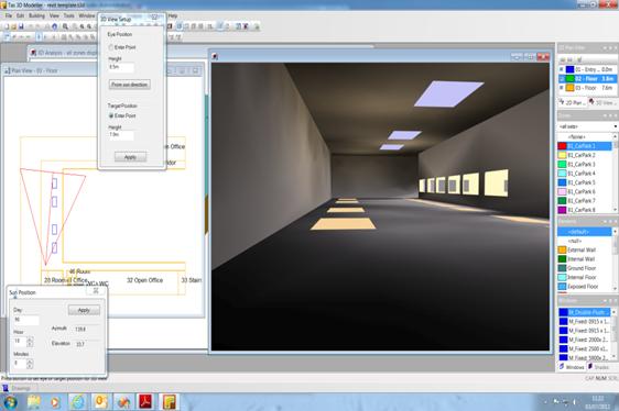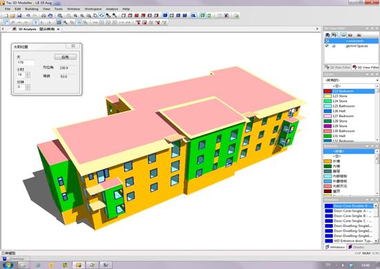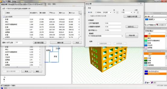 軟件可以結合自然光對照明控制系統進行模擬并計算照明節能量。軟件可以對建筑進行太陽輻射照度、得熱量、陽光折射、散射等進行分析。
