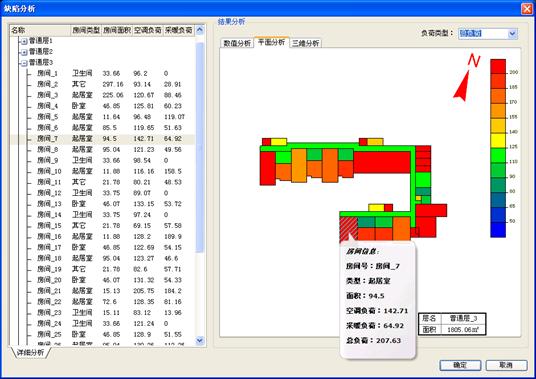通過對不同朝向或不同房間的分析,得到各圍護結構構件的能耗占比情況,薄弱環節一目了然,幫助找到保溫性能最差的圍護結構,有針對性地進行節能優化設計,更快捷地調整節能設0方案。