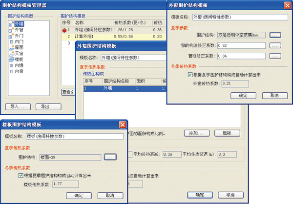 “模板”是負荷計算中的重要概念。使用模板的優點,使數據的修s編輯非常方便。在設計、計算過程中,如果圍護結構需要調整,只需在模板管理器中,編輯修改模板數據,則所有引用該模板的圍護結構,全部自動調整,無需對逐個房間、逐個圍護結構進行修改編輯。