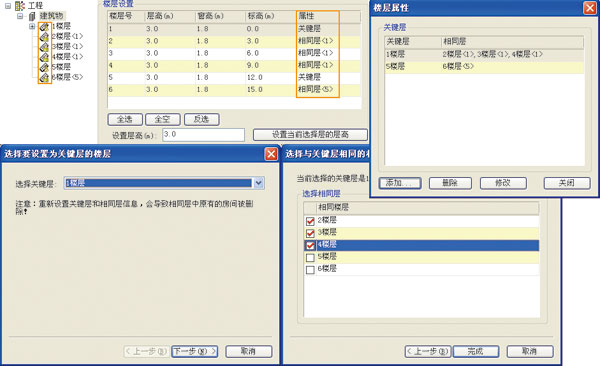 大部分的建筑物中,除了少數樓層的幾何形狀、功能分區不相同外,大部分樓層都是相同的,尤其是住宅建筑。因此負荷計算引入了關鍵層、相同層和普通層的概念,關鍵層中所有房間的改變都會體現在相同層中,大大減少了數據錄入和編輯的工作量。