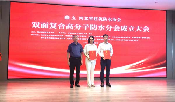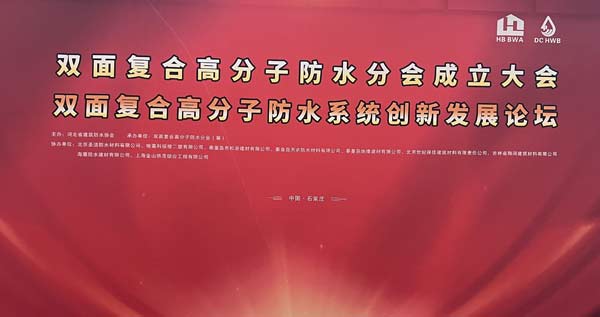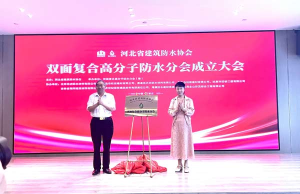 2023年9月11日,由河北省建筑防水協會主辦、雙面復合高分子防水分會(籌)承辦、北京圣潔防水材料有限公司、哈高科綏棱二塑有限公司、秦皇島市松巖建材有限公司、秦皇島天衣防水材料有限公司、秦皇島地維建材有限公司、北京世紀保佳建筑材料有限責任公司、吉林省翔河建筑材料有限公司、海盾防水建材有限公司、上海金山僑茂綜合工程有限公司協辦的“河北省建筑防水協會雙面復合高分子防水分會成立大會、雙面復合高分子防水系統創新發展論壇”在石家莊舉行。