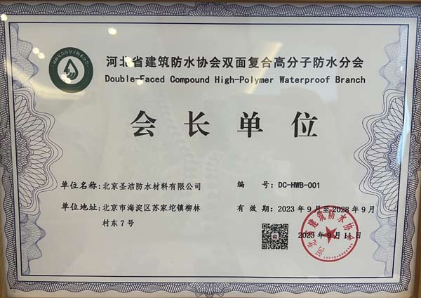 河北防水協會雙面復合高分子防水(丙綸)分會成立!圣潔董事長杜昕任會長