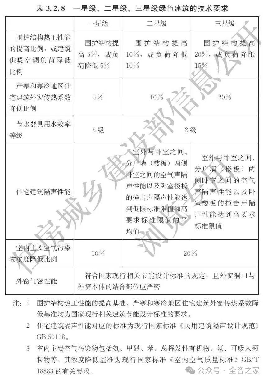 ▲ 一星級、二星級、三星級綠色建筑的技術要求
