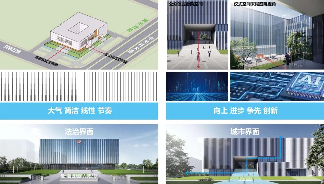 方案的建筑設計理念為“法智方院”,從法治建設、智慧建筑、智造新城、時代方院來展現新時代衢州智造新城人民法院的特點。