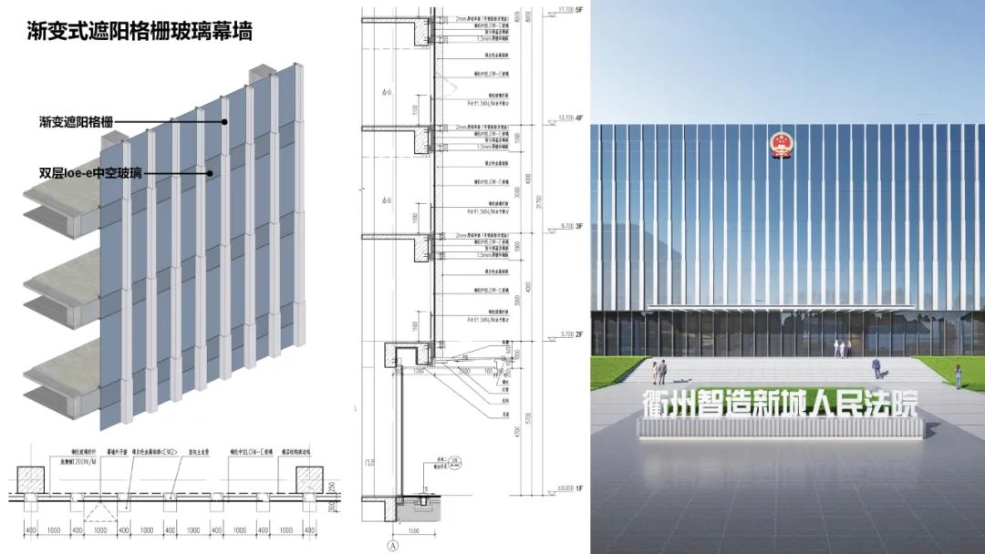 ▲東側城市界面豎明橫隱遮陽玻璃幕墻