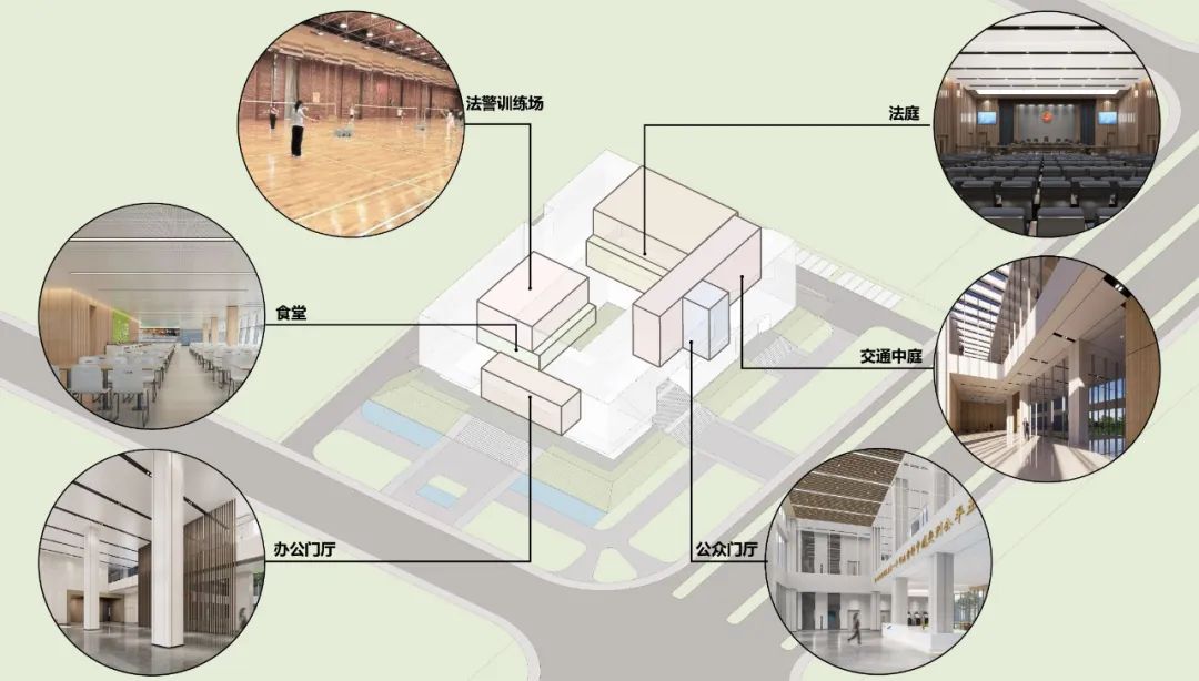 法院景觀與法院建筑相輔相成,承載彰顯司法形象及城市界面的功能,不僅僅是司法人員的辦公場所,也是市民法治教育與休閑綠色放松家園。