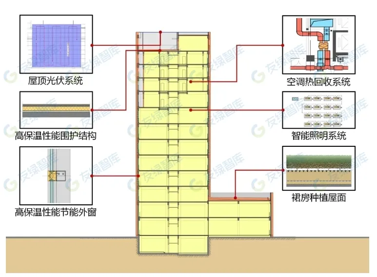 該樓融入主動與被動節能策略,充分利用可再生能源,成功實現綠色建筑三星級及近零能耗建筑目標,已取得設計階段近零能耗預認證證書,為軌道交通行業首個項目。