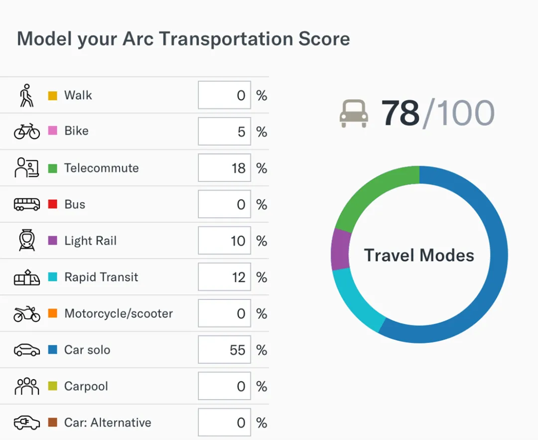 交通碳排放和選址和未來規劃有關,選址周邊有公共交通系統,步行/騎行安全專用道路,TOD(交通為導向的設計理念)都可以有效幫助減少交通碳排放,拼車車位,共享汽車車位,充電樁車位也可以有效降低交通碳排放。