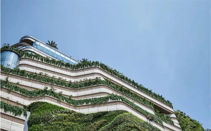建筑幕墻的隔熱保溫性能與能耗有著緊密的關系。幕墻設計加入植被并使用高太陽輻射反照率材料,可使表面溫度最多可降低 9°C,從而減少建筑能耗。