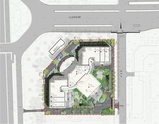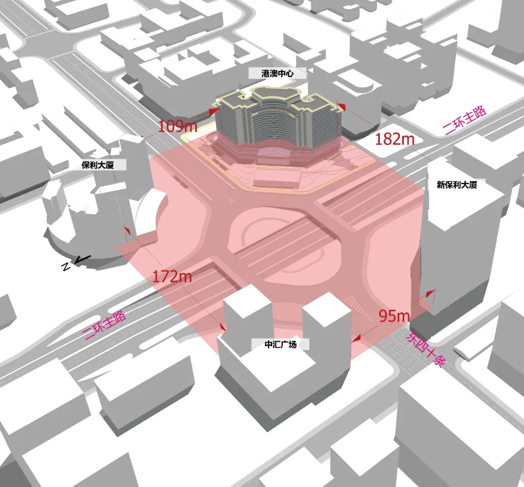 本項(xiàng)目用地較為緊張,距離地鐵二號(hào)線東四十條 C出口僅20米左右,此處還在規(guī)劃建造地鐵3 號(hào)線,東四十條將成為換乘站,人流會(huì)大量激增,所以人流出入口規(guī)劃是此項(xiàng)目關(guān)注的重點(diǎn)。