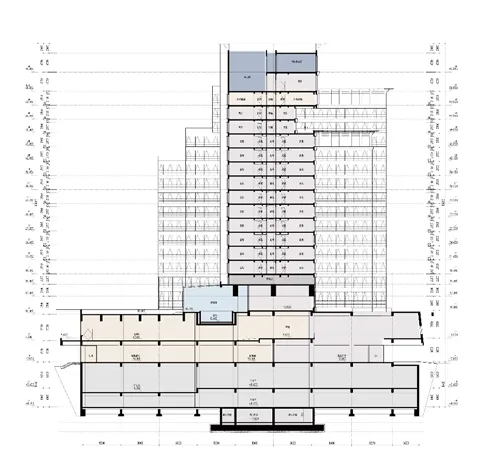四層 ~ 十五層布置酒店客房、配套后勤、公寓及外租辦公;