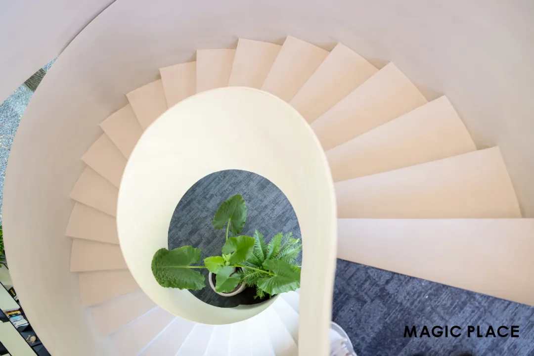 WELL設計亮點 | 運動與健康 通過美學設計和樓梯可視性來鼓勵多使用樓梯。在樓梯周圍融入自然設計元素,如植物。提高用戶使用樓梯的概率,節能的同時還有效地幫助久坐的辦公工作者提高運動積極性。