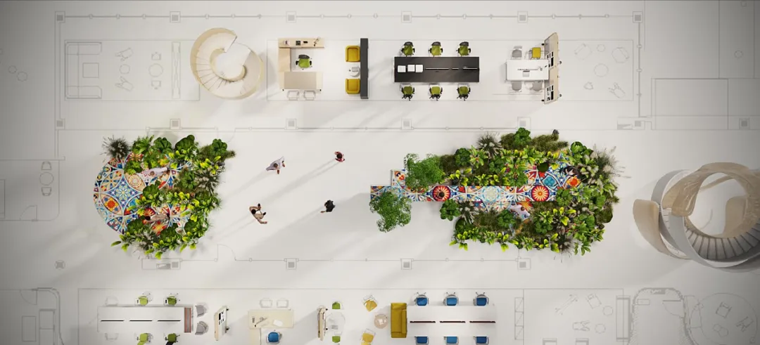 WELL設計亮點 | 親自然本性設計 親近植物和其他自然元素有助于降低舒張壓、抑郁和焦慮水平;提高專注力;更好地擺脫工作壓力和疾病;增強心理健康和耐受性。 植物與環境融為一體,有助于提高員工士氣、減少曠工以及提高工作效率和工作滿意度。美稷項目的室內室外都有隨處可見的植物景觀,有效提高用戶的辦公或學習效率。因此,用戶獲得更高的專注力,和更加愉悅的工作或學習的心情。
