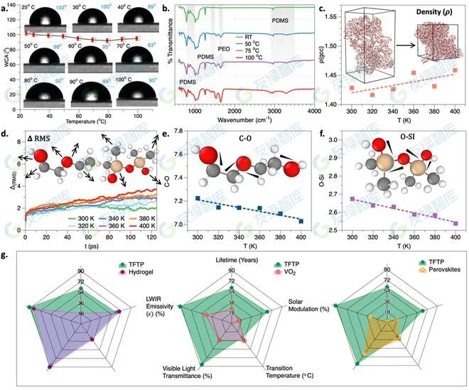 通過這些結果,研究團隊得出結論:溫度變化通過對于TFTP薄膜中內聚力和混溶性的影響引起了TFTP膜的結構重構。從而導致了TFTP膜在較高溫度下發生相分離,并且使得其太陽光透射率發生改變。