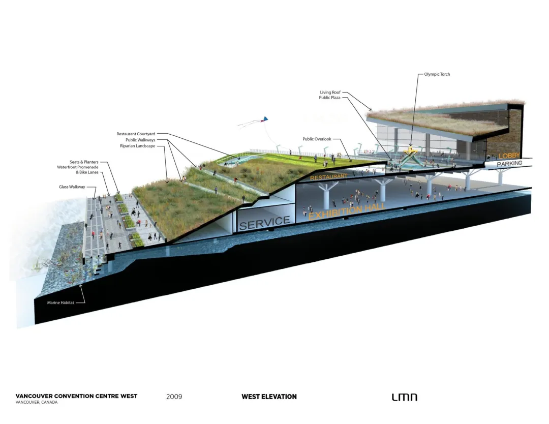溫哥華會議中心西座落于城市海濱,可欣賞到山脈、海洋和公園的壯麗景色,其設(shè)計旨在將當(dāng)?shù)厣鷳B(tài)、充滿活力的當(dāng)?shù)匚幕徒ㄖh(huán)境融為一體,同時強調(diào)它們之間的關(guān)系,將其作為一個綠色建筑項目。它被稱為世界上第一個 LEED白金級會議中心,并因其創(chuàng)新的設(shè)計方法而獲得殊榮,這些方法顯著改善了當(dāng)?shù)厣鐓^(qū)和環(huán)境特征,使其成為一個綠色建筑項目。