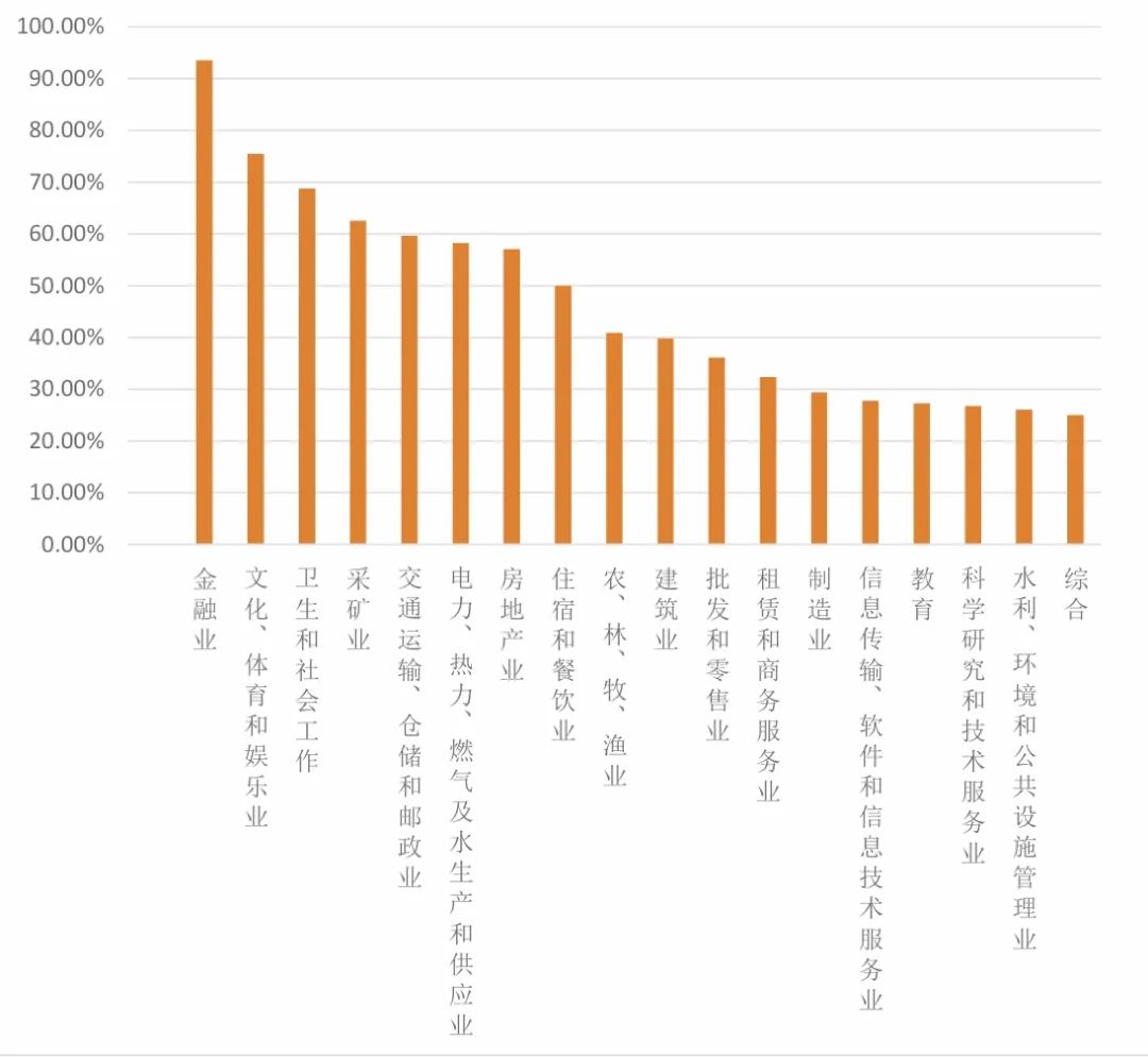 圖2 2023年我國不同行業A股上市公司發布獨立ESG/社會責任報告比率