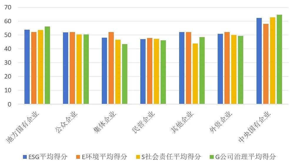 圖6 2023年各屬性A股上市公司ESG及各維度平均得分情況
