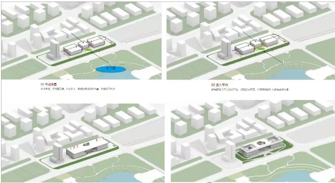項目用地為120*295的矩形地塊,場地臨城市主干道呈扁長形。設計將博物館、檔案館、革命歷史紀念館三個功能作為一個整體進行設計。