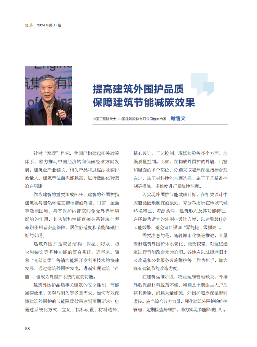 肖緒文:提高建筑外圍護品質,保障建筑節能減碳效果