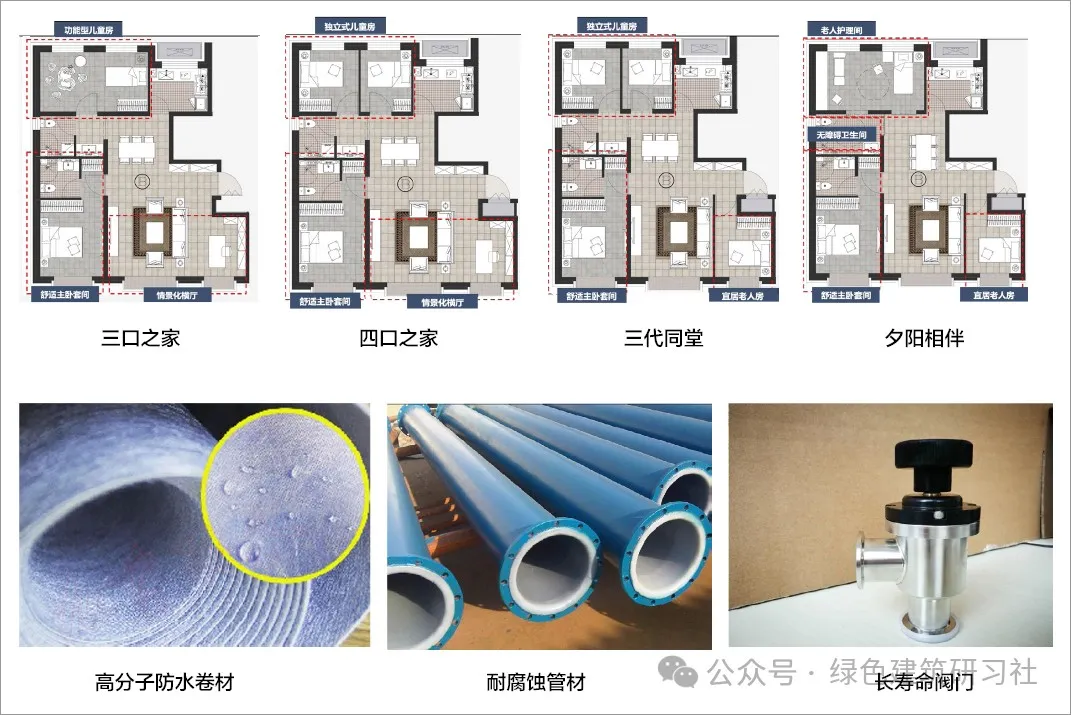 針對(duì)人居品質(zhì)選取耐久性好、安全性高、易維護(hù)的建筑材料,有效延長(zhǎng)使用壽命;裝飾裝修全部選用滿足國(guó)家現(xiàn)行綠色建筑標(biāo)準(zhǔn)材料,以能源節(jié)約的“可持續(xù)性發(fā)展”作為建筑宗旨,有效降低建筑材料、水、電、太陽(yáng)能等使用過(guò)程中的能源消耗;打造安全耐久、健康舒適、能源節(jié)約的優(yōu)質(zhì)住宅;預(yù)留長(zhǎng)壽命住宅改造條件。
