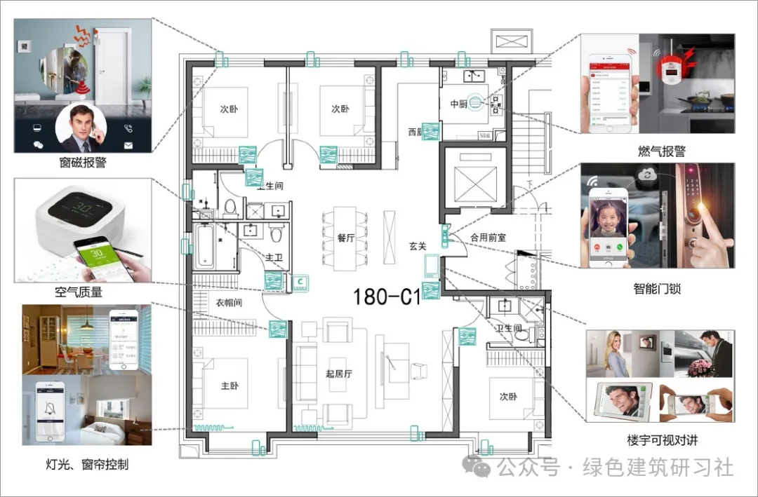 本項(xiàng)目充分考慮住宅項(xiàng)目特點(diǎn),結(jié)合綠色建筑、健康建筑、超低能耗建筑的綜合因素,充分利用遠(yuǎn)程控制、智慧城市等科技技術(shù)配備智能家電控制、照明控制、安全報(bào)警、環(huán)境監(jiān)測(cè)、生活服務(wù)等智能設(shè)施,提升項(xiàng)目品質(zhì)及居住智能化水平。地上全部實(shí)施超低能耗建筑,建筑全生命周期(70年)減碳量超過(guò)32萬(wàn)噸。