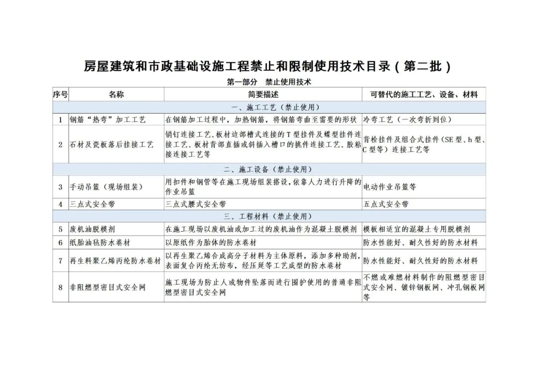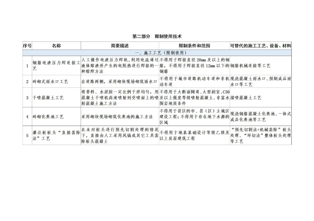 【住建部】發(fā)布《房屋建筑和市政基礎(chǔ)設(shè)施工程禁止和限制使用技術(shù)目錄(第二批)》