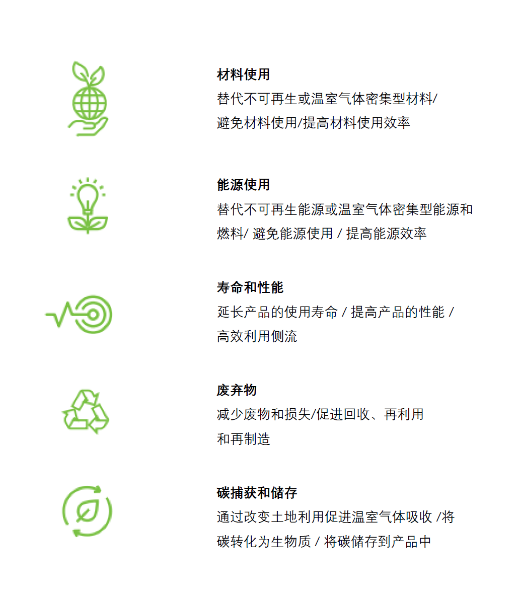 除了網絡辦公和低碳出行,還有很多其他方式可以形成碳手印,通常是更高效的材料和能源利用、更換或避免使用不需要的材料、減少浪費、延長使用壽命和重復利用,或這些方式的組合。另外,碳捕獲和儲存也逐漸在貢獻碳手印中扮演著重要作用。