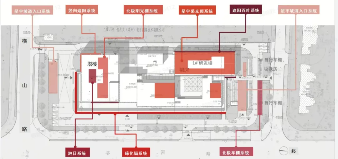 75%屋面綠化、光伏遮陽(yáng)、構(gòu)架遮陽(yáng)。