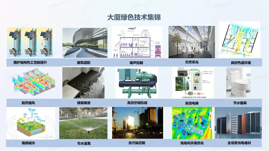 在建筑設(shè)計(jì)過(guò)程中,通過(guò)高效圍護(hù)結(jié)構(gòu)、海綿城市設(shè)計(jì)、裝配式設(shè)計(jì)、場(chǎng)地聲環(huán)境、熱島環(huán)境優(yōu)化、建筑采光通風(fēng)設(shè)計(jì)等被動(dòng)式設(shè)計(jì);運(yùn)用雨水回收利用、高效設(shè)備機(jī)組、室內(nèi)空氣凈化等主動(dòng)式策略;采取利用太陽(yáng)能、地源熱能、空氣熱能等可再生能源補(bǔ)充項(xiàng)目用能;