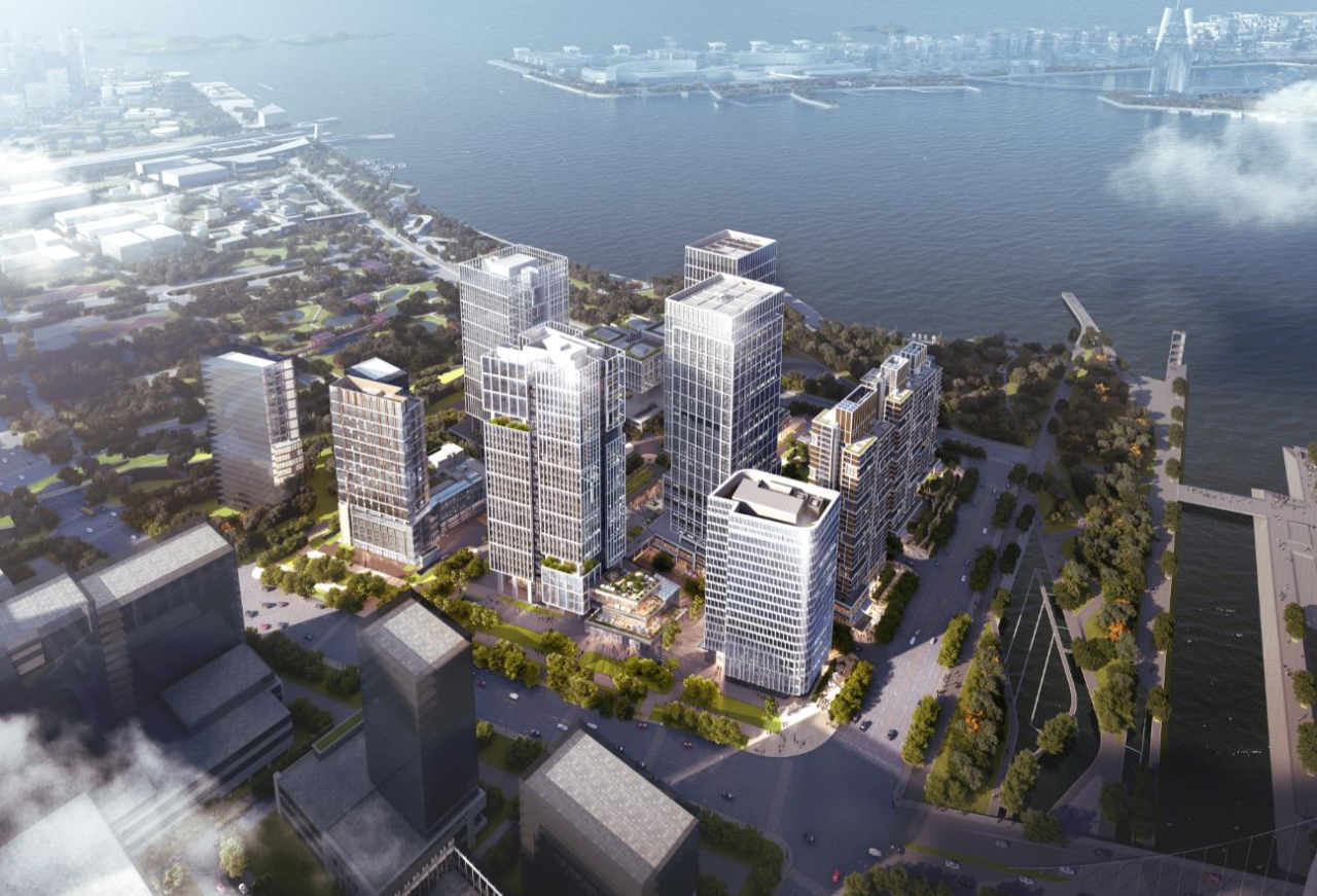 本項(xiàng)目位于上海楊浦濱江南段,為楊浦濱江、虹口北外灘、浦東陸家嘴黃金三角區(qū)域核心地段,是楊浦濱江第一門戶。項(xiàng)目總建筑面積189,936m2,其中地上119,136m2,地下70,800m2,容積率4.0,綠地率21%,主要以商業(yè)辦公為主。地上含七個(gè)建筑單體:1#(保護(hù)建筑遷回)、2#~4#(商業(yè)樓)、5#(160m超高層主塔樓)、6#(97.4m高層塔樓)、7#(多層公共配套服務(wù)設(shè)施樓)及3層地下室,約50m長(zhǎng)的架空連橋聯(lián)系兩座塔樓。