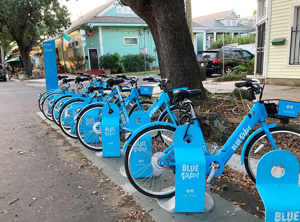 新奧爾良藍色自行車計劃提供每分鐘電動自行車租賃服務,以及每月使用計劃,包括一項名為“全民藍色自行車”的每月4美元折扣會員計劃,適用于符合SNAP或醫療補助資格的居民。