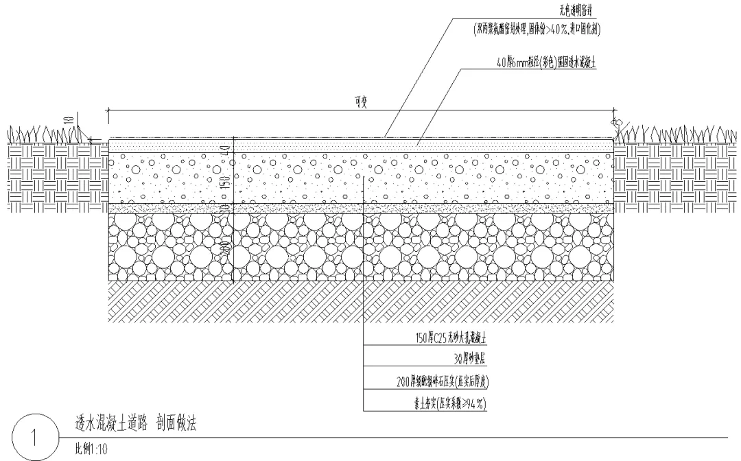 項目共計設(shè)置16317.13平方米的透水混凝土,占硬質(zhì)鋪裝面積的70%,增強(qiáng)場地透水性能,實現(xiàn)校園小雨不積水,提升師生雨天出行安全性。通過透水混凝土與EPDM混鋪,形成面層圖案豐富的活動場地空間,使原本單調(diào)乏味的道路場景,變得具有藝術(shù)性、趣味性。