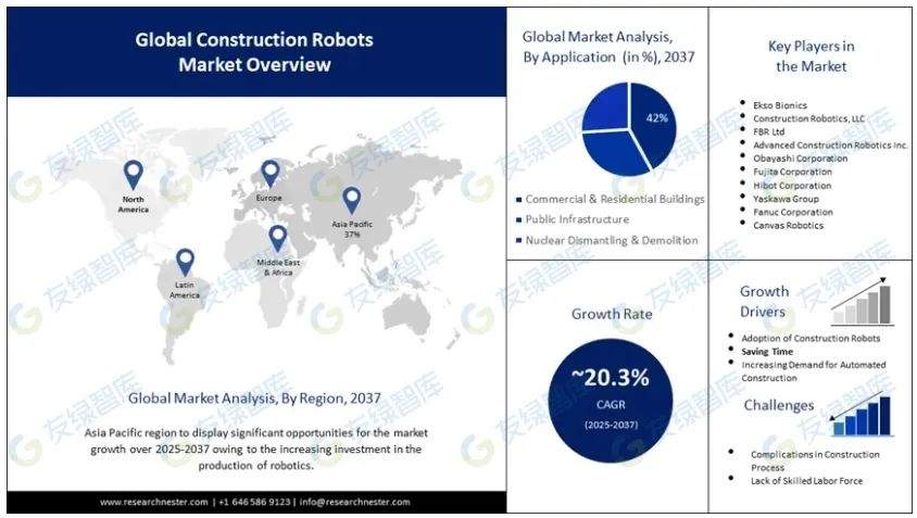 美國綠色建筑委員會報告稱,建筑施工占美國廢物總量的 30%,全球估計在 25-40% 之間。這加速了建筑機器人的采用,尤其是在精度和效率至關重要的非住宅項目中。